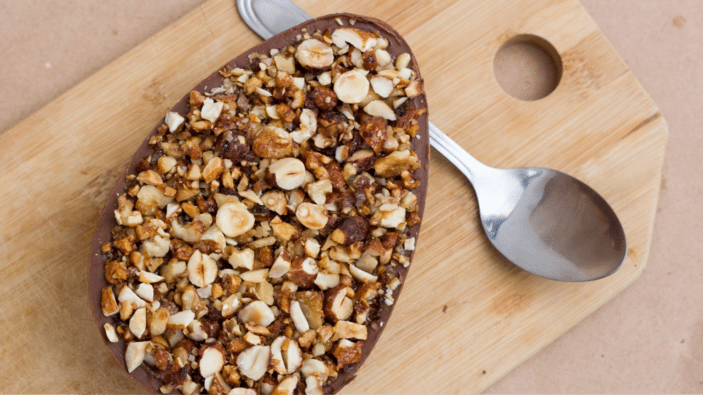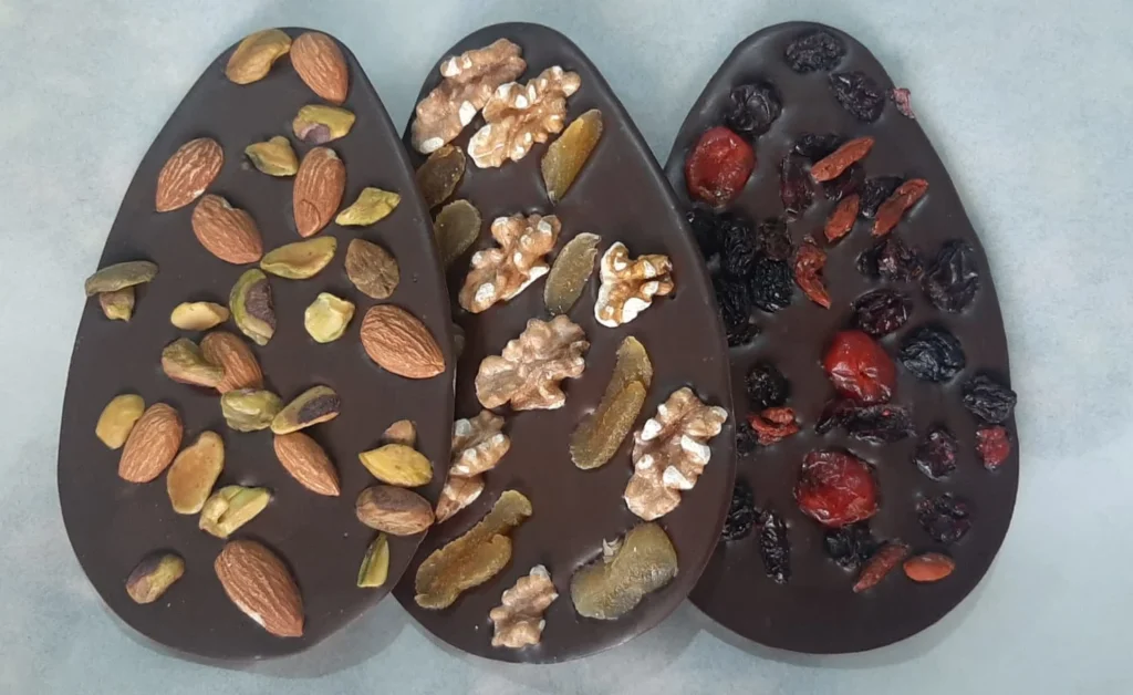 - Coloque as nozes, castanhas e frutas secas por dentro de maneira que grudem no chocolate.